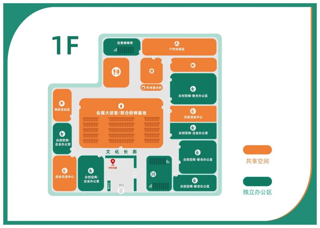 平台一期以会展配套产业园3号栋为总部基地,建筑面积2371平方米,分为上下两层。平台根据不同入驻企业需要设置不同类型的办公区域:包括独享区域、工位、联合办公等多种形式,设置共享使用的创业交流中心、会展大讲堂/联合研修基地、商务洽谈区、交流活动中心、共享茶水吧、多功能会议室、联合党建活动室、多功能路演厅/创业培训辅导室及商务服务中心。